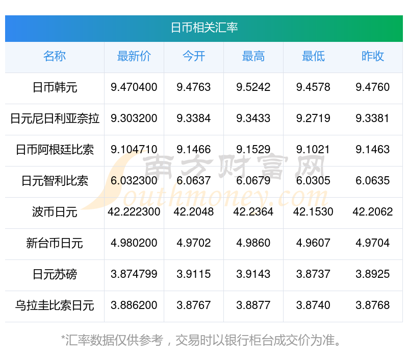 南方財(cái)富網(wǎng)為您提供日幣對(duì)挪朗匯率最新價(jià)格詳情。