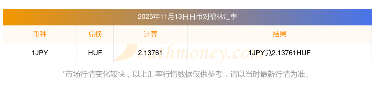 新匯率調(diào)整 今天12日幣兌換福林匯率是多少? 11月13日