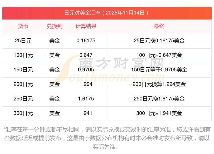 南方財富網(wǎng)為您提供日元對美金匯率最新價格詳情。