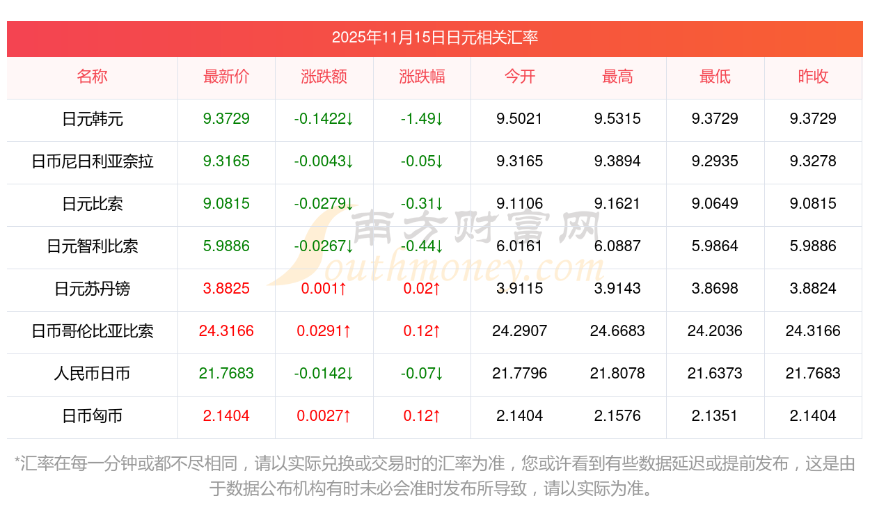 根據(jù)今天2025年11月15日匯率計算,JPY兌換CLP匯率最新價5.988600,今開價6.0161,昨收價5.9886,最高價6.0887,最低價5.9864。