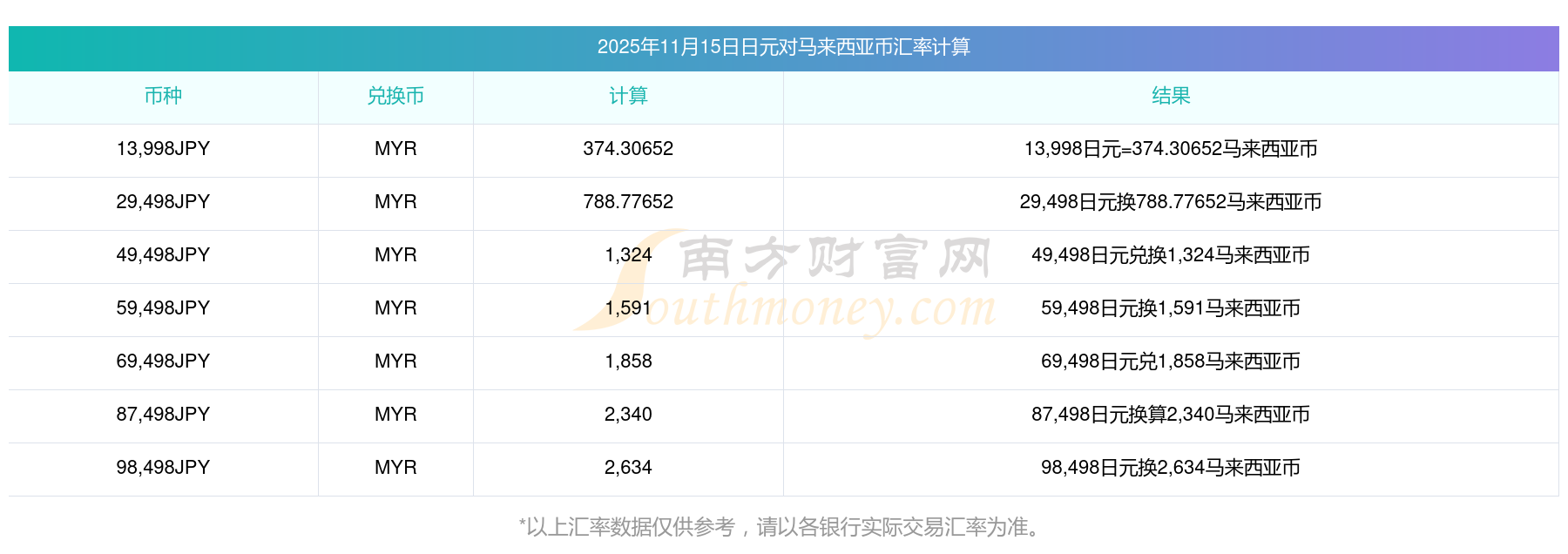 68日元兌換馬來(lái)西亞幣折算匯率表_今天外匯查詢2025/11/15