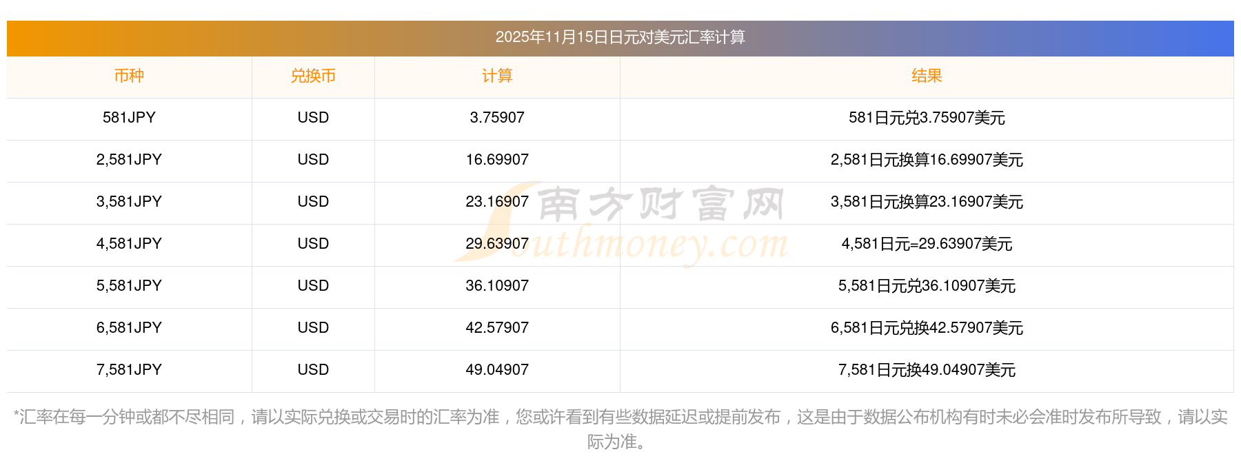 現(xiàn)在2050日元與美元的匯率是多少?11月15日