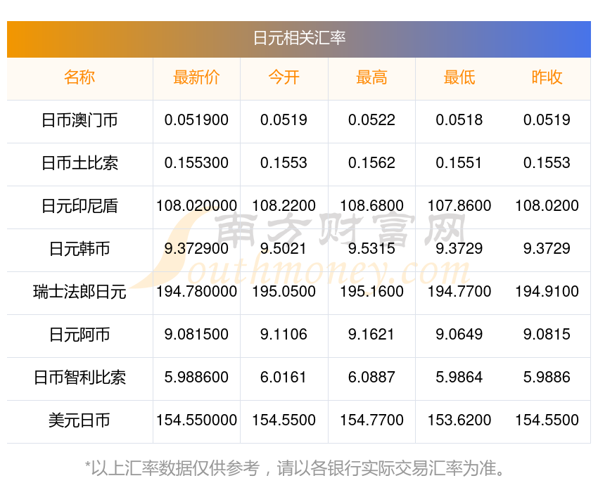 根據(jù)2025年11月15日匯率計算,日元兌換埃及鎊匯率最新價0.305413,今開價0.3053,昨收價0.3054,最高價0.3073,最低價0.3050。