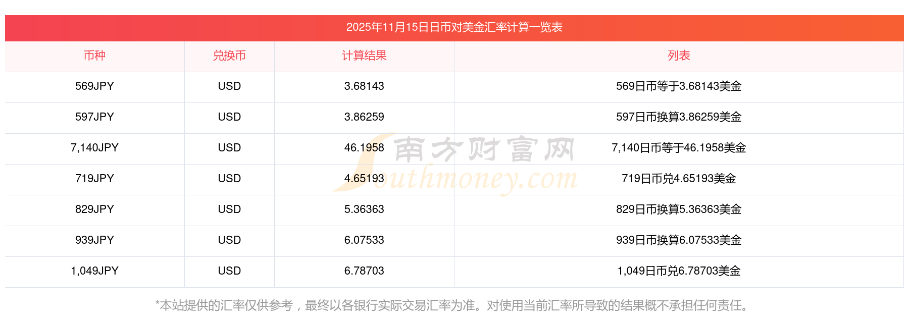 南方財(cái)富網(wǎng)為您提供日幣對美金匯率最新價(jià)格詳情。