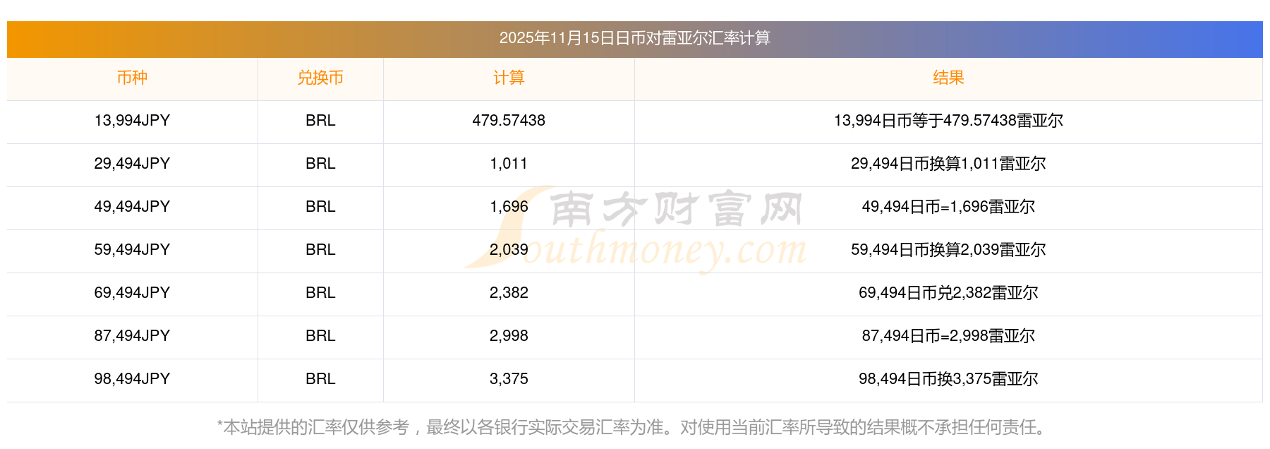 今天日幣兌雷亞爾匯率查詢_今日各國貨幣在線轉換11-15