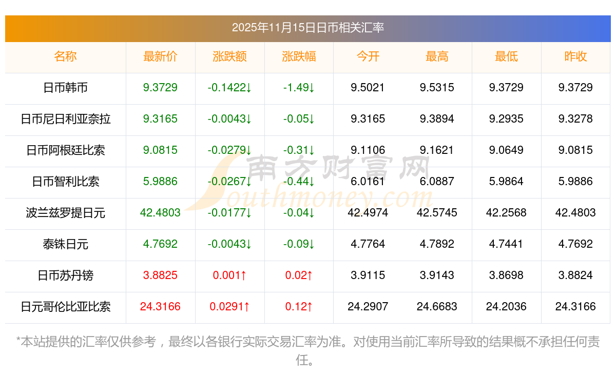 根據(jù)2025年11月15日匯率計算,JPY兌換SEK匯率最新價0.061142,今開價0.0609,昨收價0.0611,最高價0.0614,最低價0.0608。