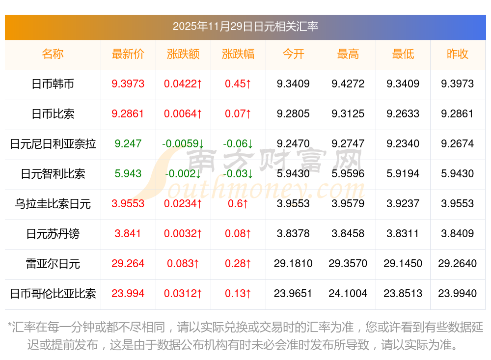 2025年11月29日日元相關(guān)匯率查詢