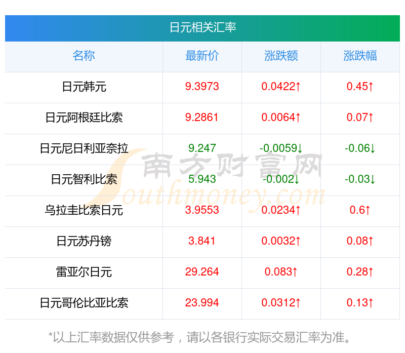 2025年11月29日日元相關(guān)匯率查詢