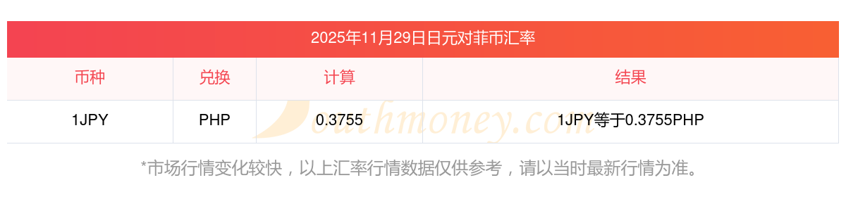 日元和菲幣兌換匯率_實時匯率查詢 2025年11月29日