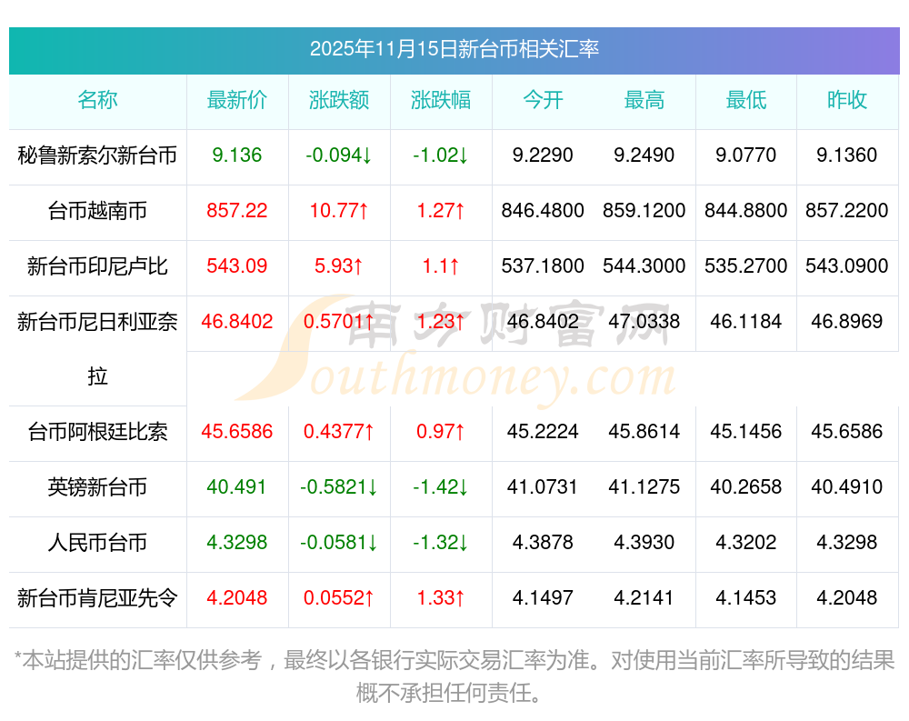 2025年11月15日新臺幣相關(guān)匯率查詢