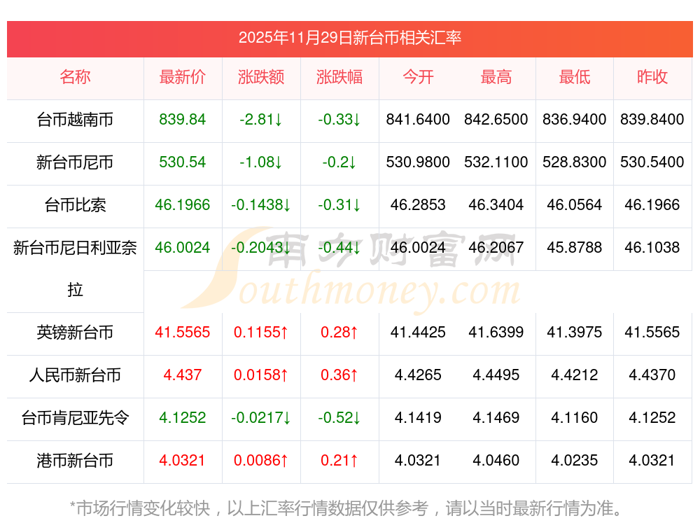 2025年11月29日新臺(tái)幣相關(guān)匯率查詢