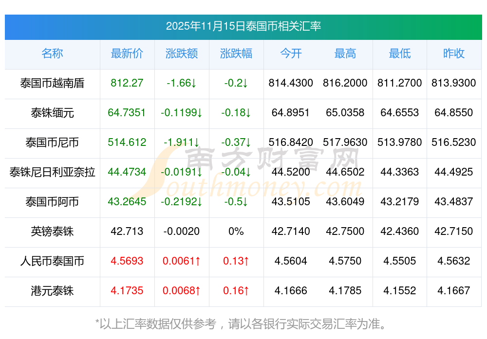 2025年11月15日泰國(guó)幣相關(guān)匯率查詢