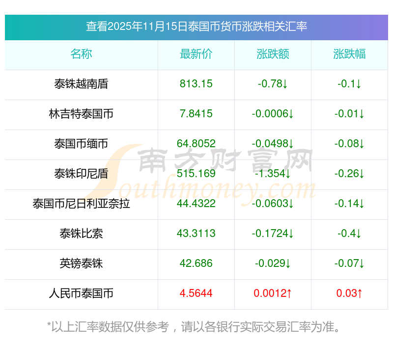 2025年11月15日泰國幣相關(guān)匯率查詢