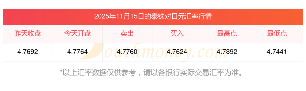 泰銖兌日元匯率記錄11月15日 泰銖兌日元匯率是多少?