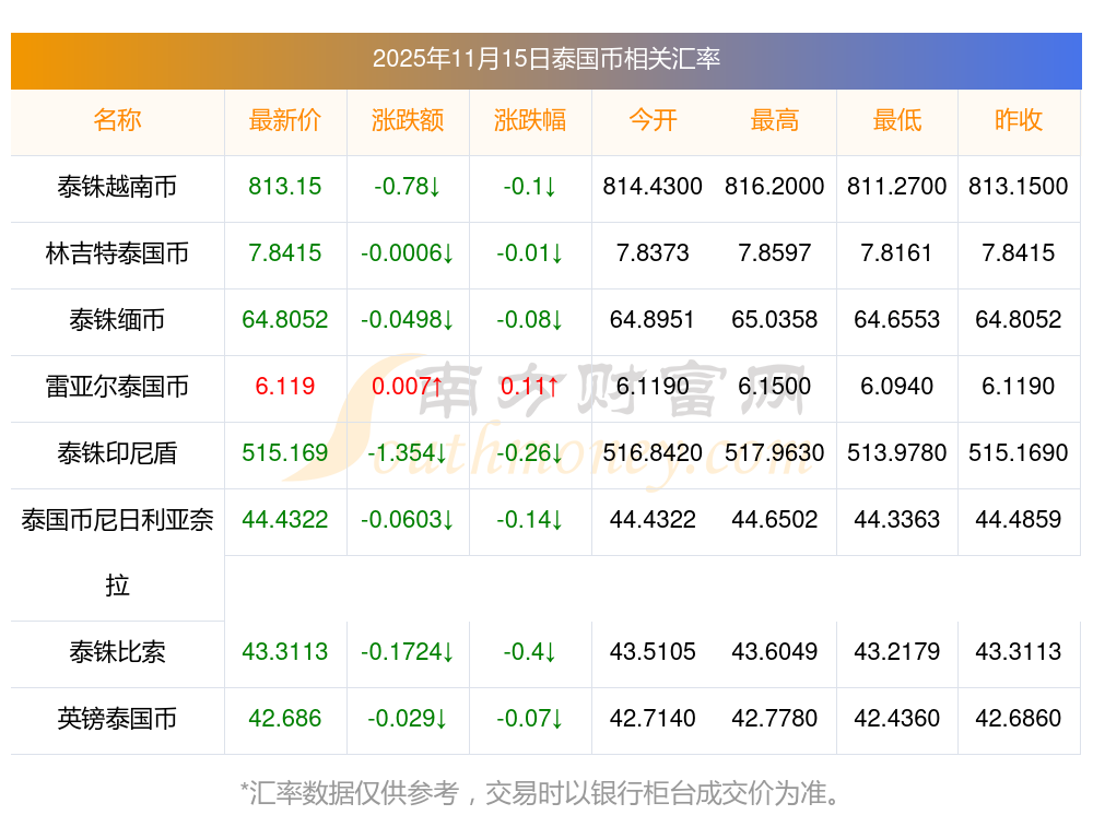 2025年11月15日泰國幣相關(guān)匯率查詢