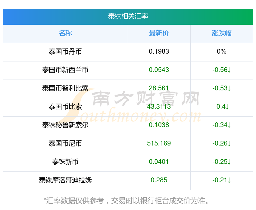 南方財富網(wǎng)為您提供泰銖對挪威克朗匯率最新價格詳情。