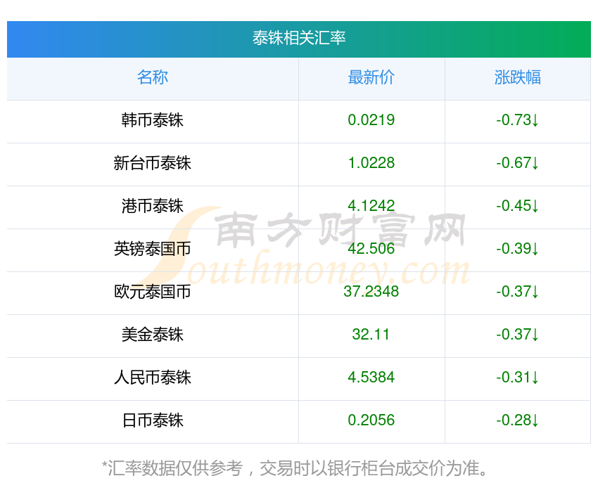 2025年11月29日泰銖相關(guān)匯率查詢