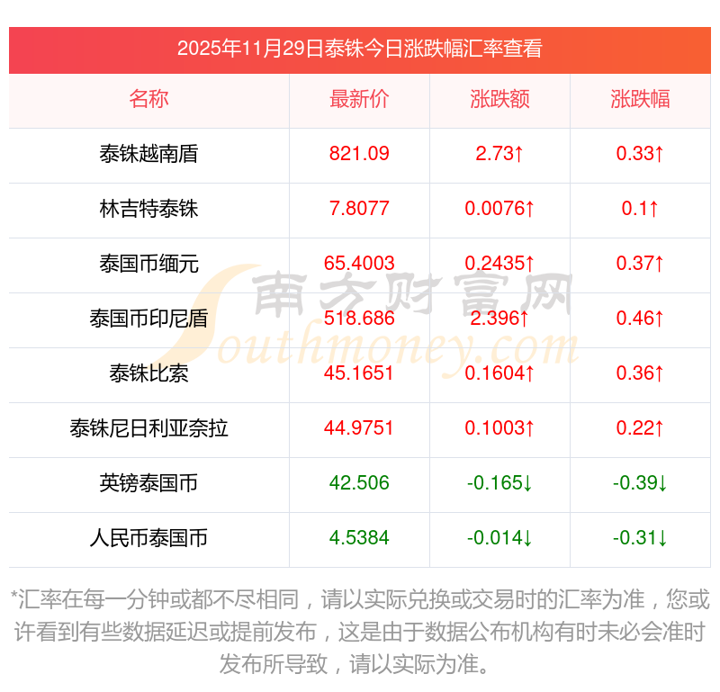 2025年11月29日泰銖相關(guān)匯率查詢