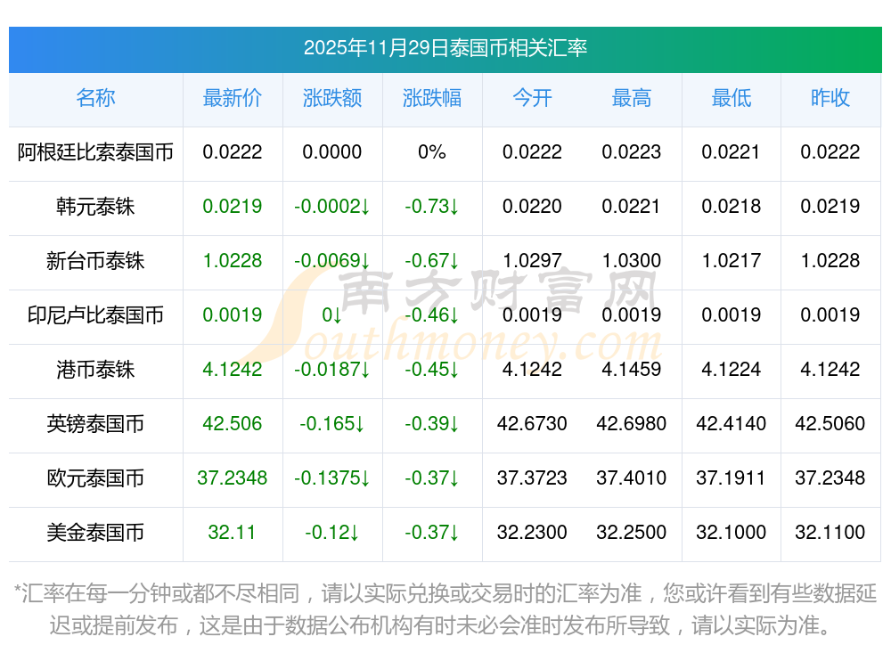2025年11月29日泰國幣相關(guān)匯率查詢