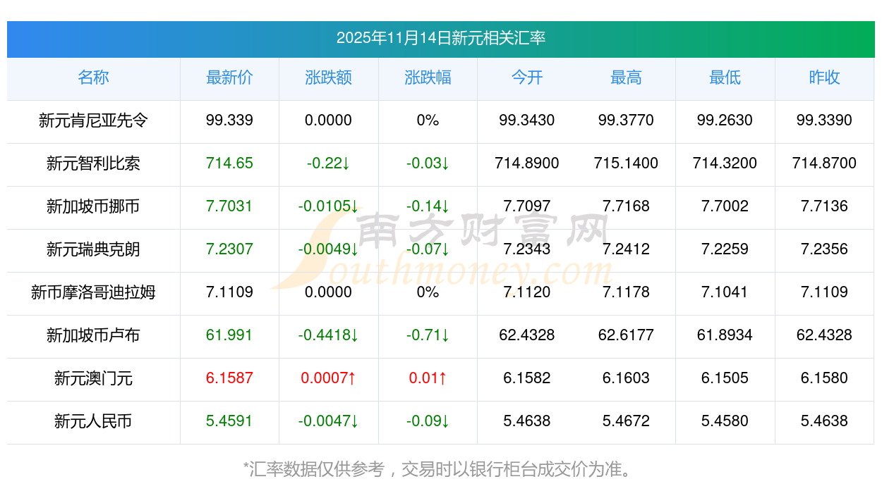 2025年11月14日新元相關(guān)匯率查詢