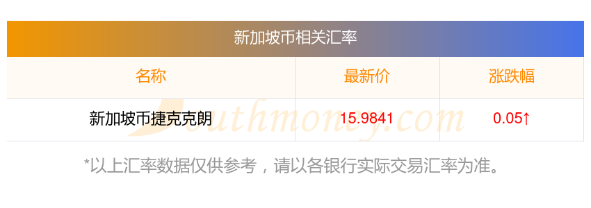 南方財(cái)富網(wǎng)為您提供新加坡幣對(duì)捷克克朗匯率最新價(jià)格詳情。