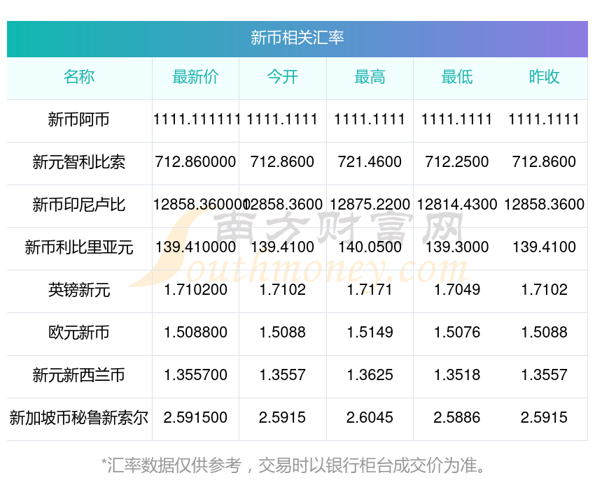 南方財富網(wǎng)為您提供新幣對阿幣匯率最新價格詳情。