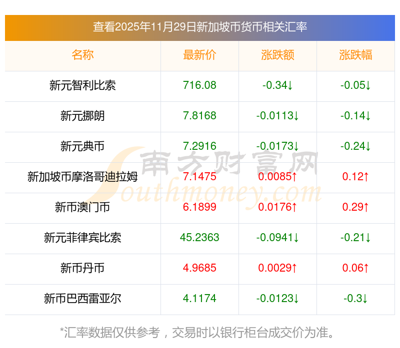 2025年11月29日新加坡幣兌換埃塞俄比亞比爾匯率是:118.452025年11月29日埃塞俄比亞比爾換新加坡幣匯率是:0.00844