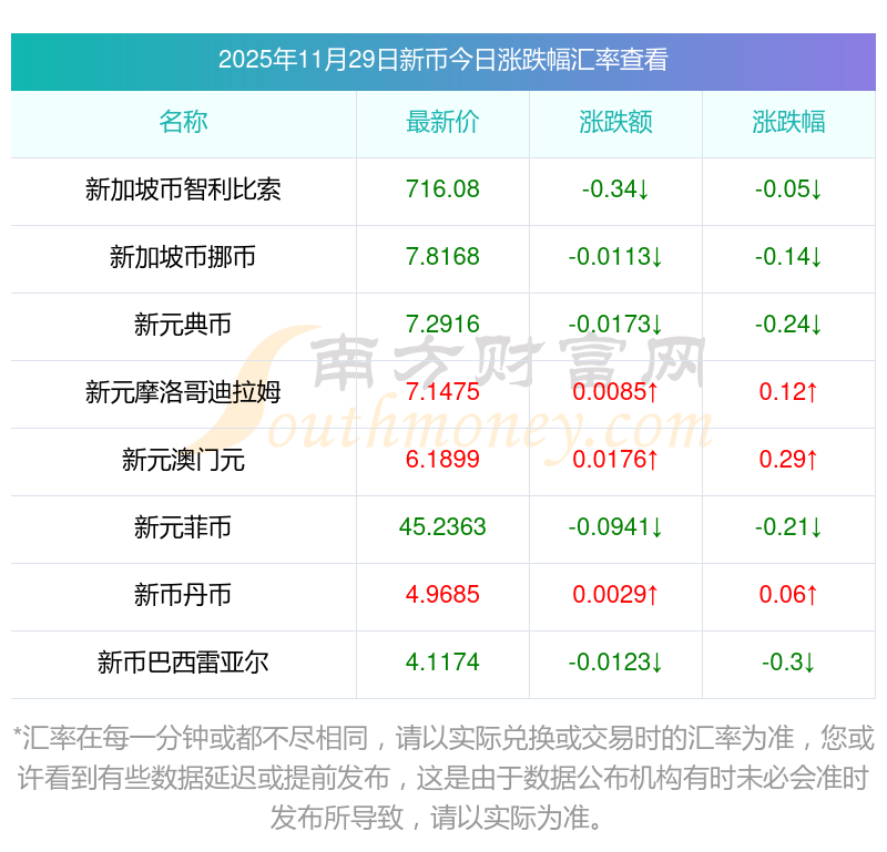 匯率在每一分鐘或都不盡相同,請以實際兌換或交易時的匯率為準,您或許看到有些數(shù)據(jù)延遲或提前發(fā)布,這是由于數(shù)據(jù)公布機構(gòu)有時未必會準時發(fā)布所導(dǎo)致,請以實際為準。