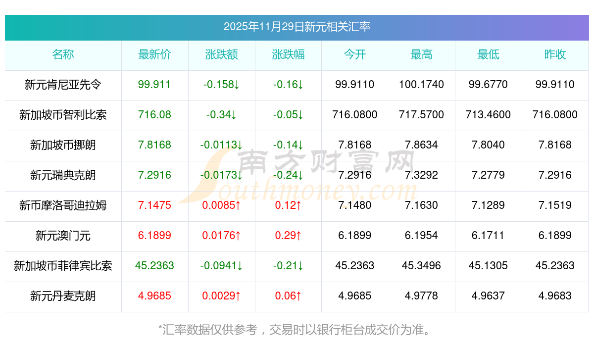 根據(jù)2025年11月29日匯率,新元兌換茲羅提匯率最新2.818500,今開2.8185,昨收2.8185,最高2.8260,最低2.8104。