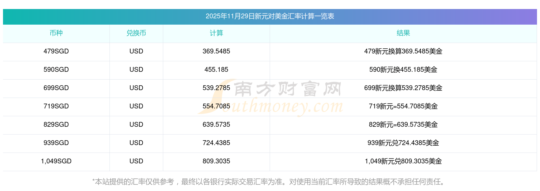 今天新元購匯行情:330新元對美金匯率多少?11-29