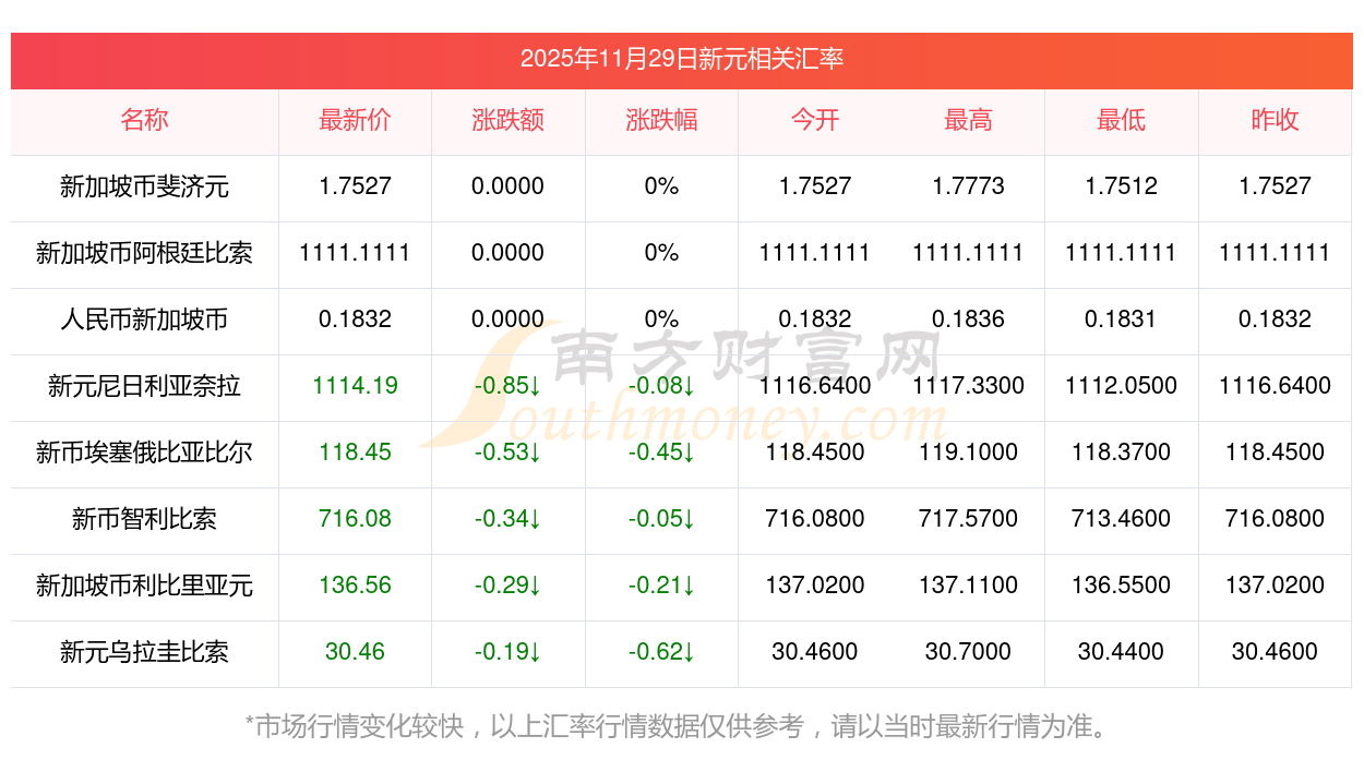 南方財富網(wǎng)為您提供新元對美金匯率最新價格詳情。