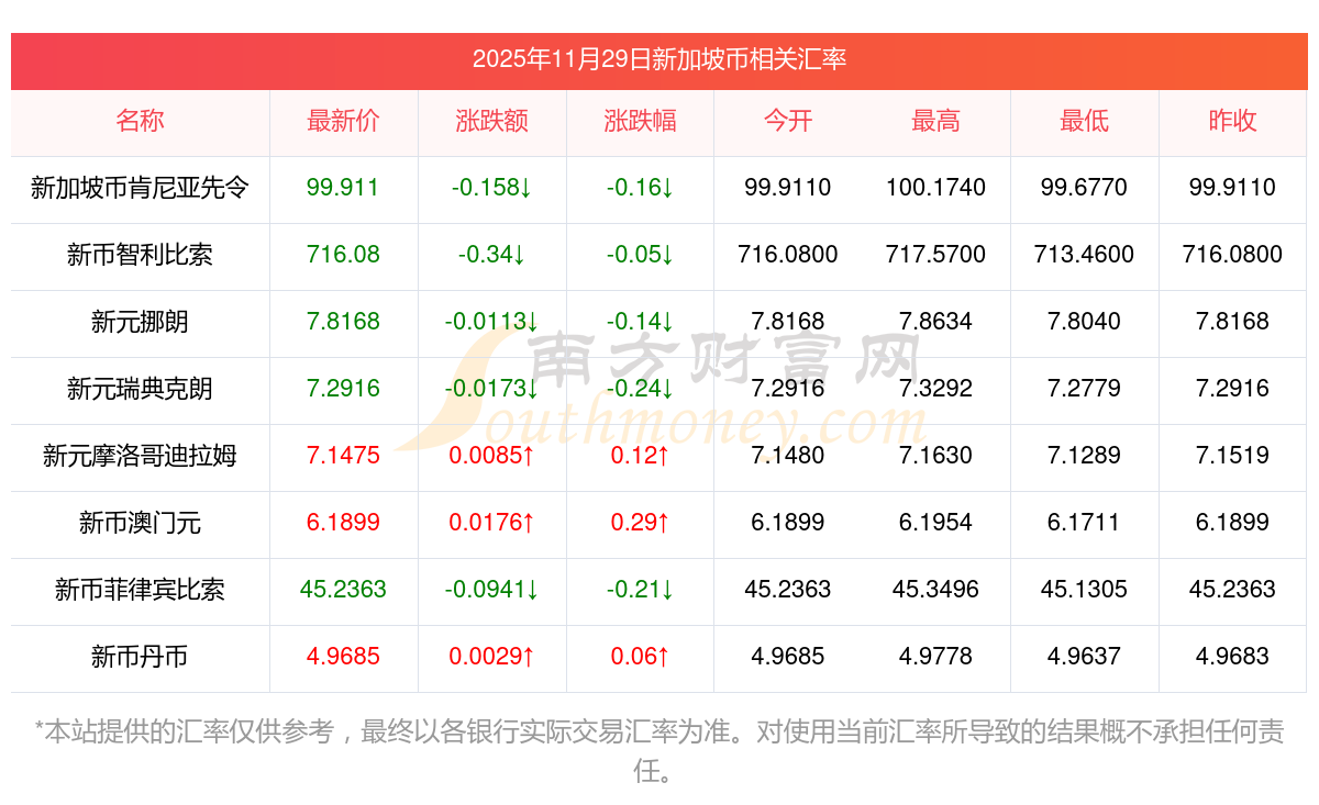 2025年11月29日最新消息,新加坡幣兌換肯尼亞先令最新匯率為99.911000,今開為99.9110,昨收為99.9110,最高為100.1740,最低為99.6770。
