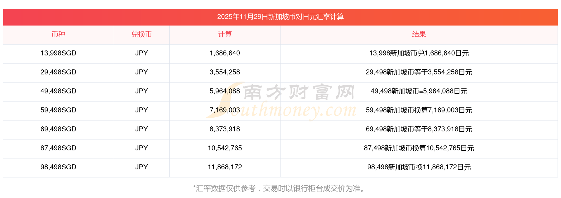 新加坡元兌日元匯率走勢 今天1新加坡元兌換多少日元?2025-11-29