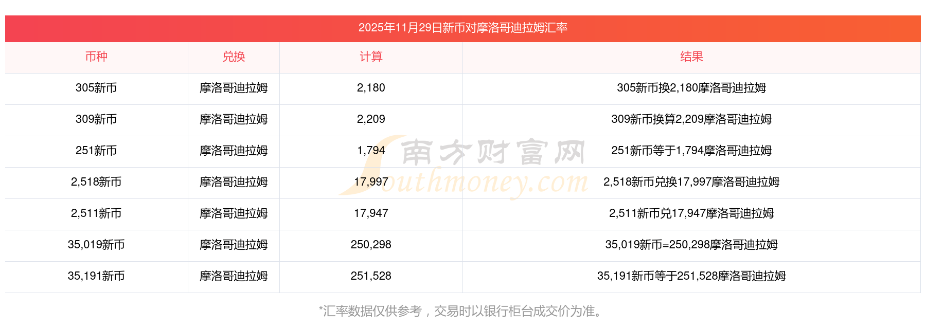 今日1000新幣對摩洛哥迪拉姆匯率多少?匯率換算計算方法11月29日