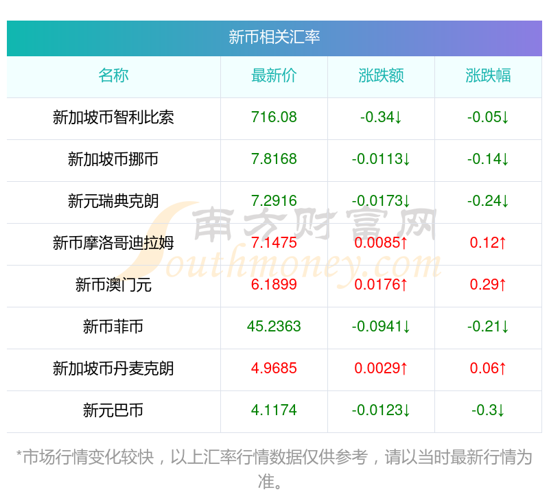南方財富網(wǎng)為您提供新幣對摩洛哥迪拉姆匯率最新價格詳情。