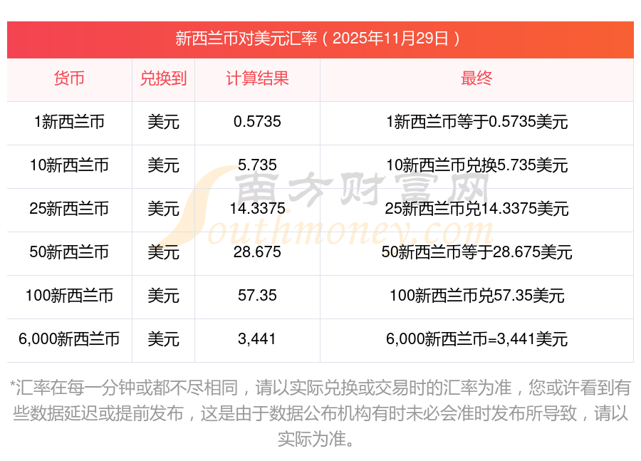 南方財富網(wǎng)為您提供新西蘭幣對美元匯率最新價格詳情。