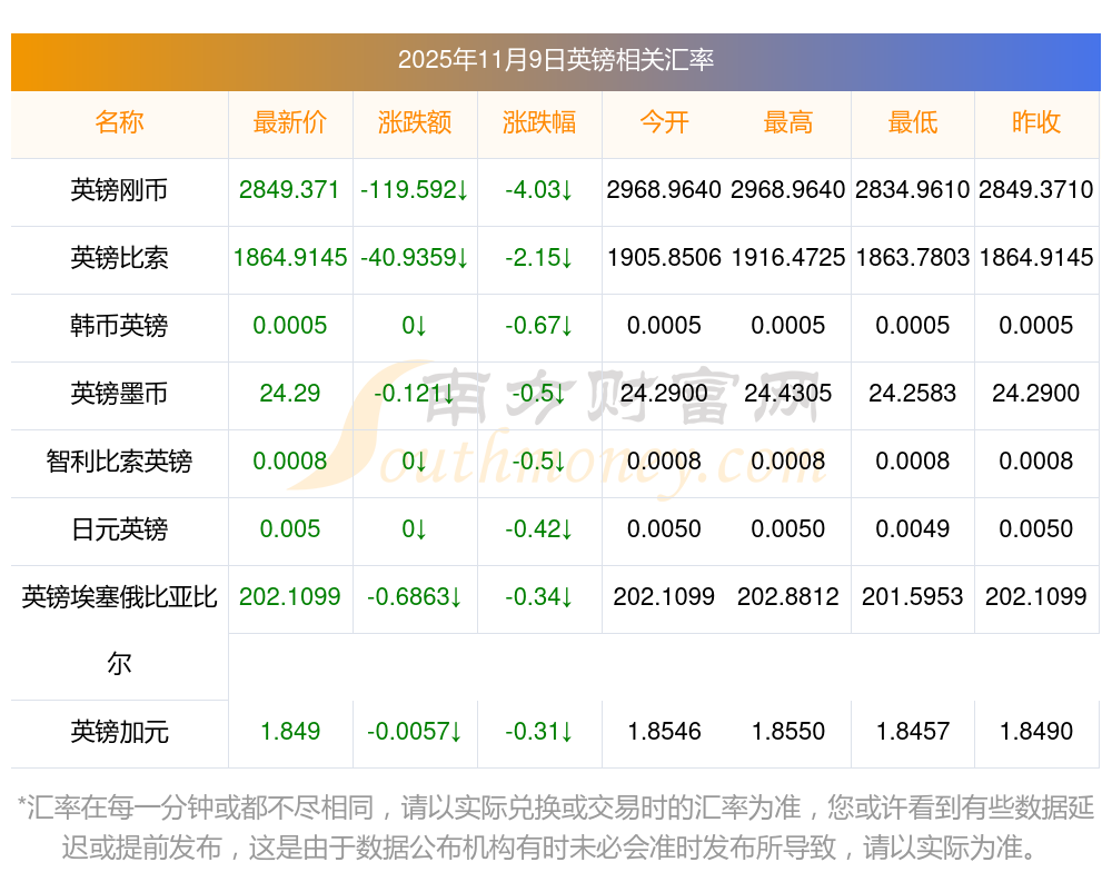 2025年11月9日英鎊相關(guān)匯率查詢(xún)