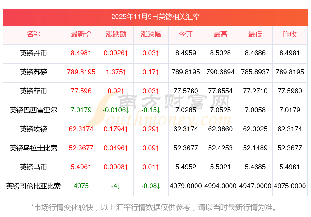 根據(jù)2025年11月9日匯率計(jì)算,GBP兌換ETB匯率最新價(jià)202.109900:今日開價(jià)202.1099,昨日收價(jià)202.1099,最高價(jià)202.8812,最低價(jià)201.5953。