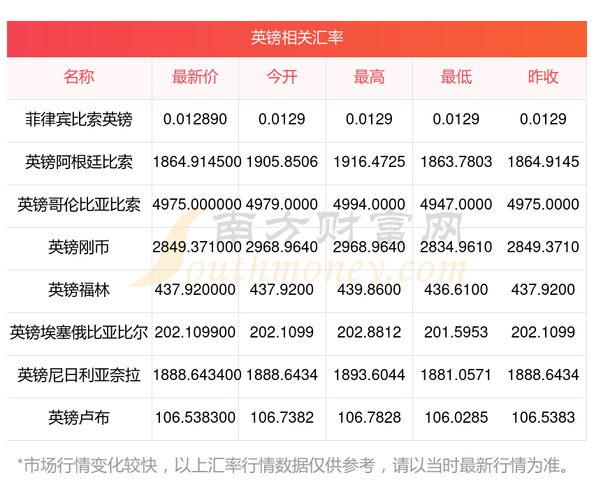 2025年11月9日英鎊相關(guān)匯率查詢(xún)
