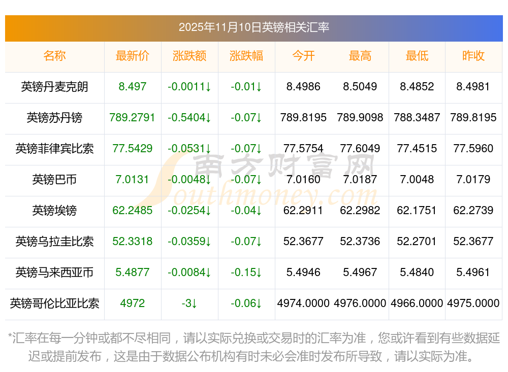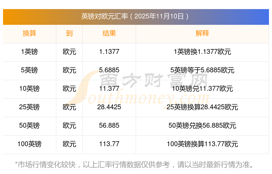 今天英鎊購(gòu)匯行情:250英鎊對(duì)歐元匯率多少?2025/11/10