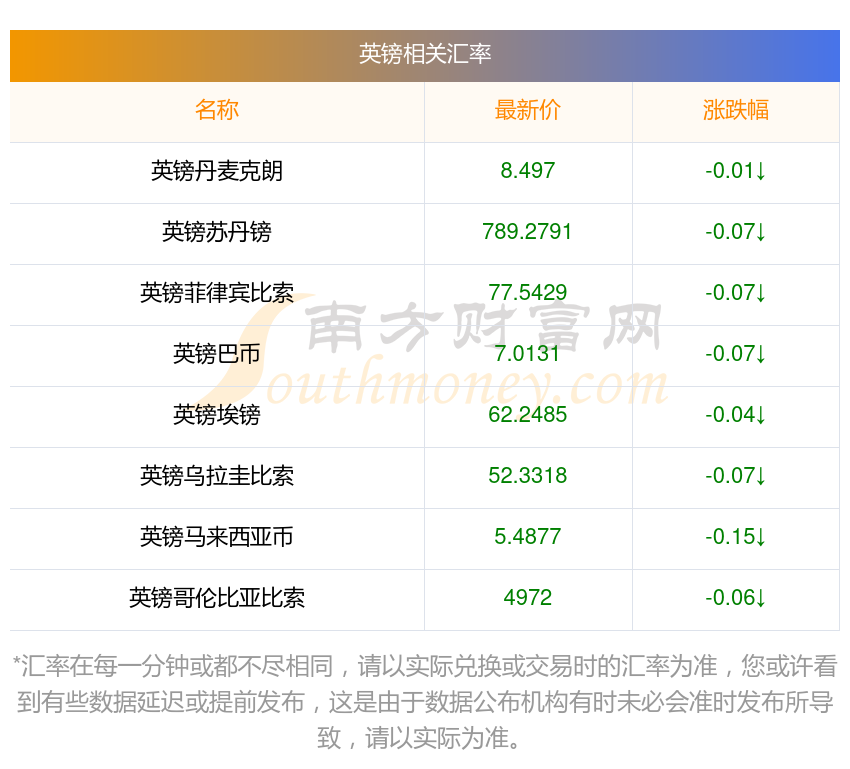 南方財(cái)富網(wǎng)為您提供英鎊對剛幣匯率最新價格詳情。