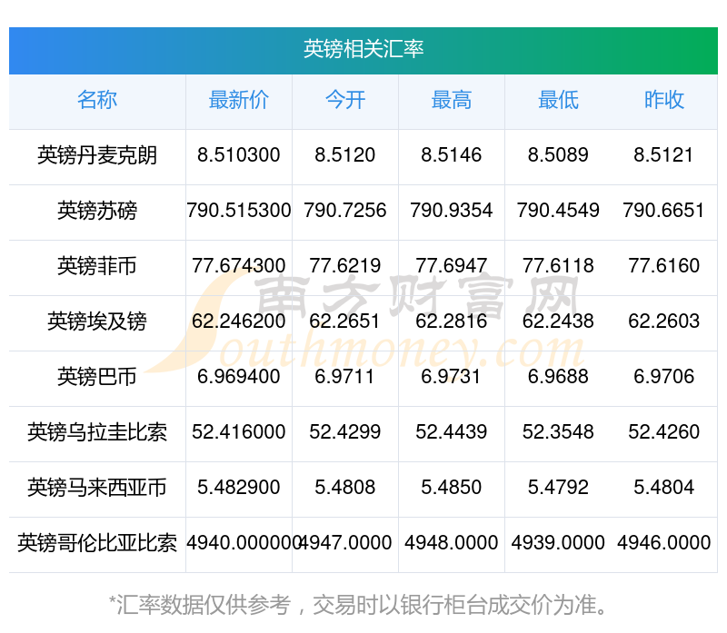 本站提供的匯率僅供參考,最終以各銀行實(shí)際交易匯率為準(zhǔn)。對使用當(dāng)前匯率所導(dǎo)致的結(jié)果概不承擔(dān)任何責(zé)任。
