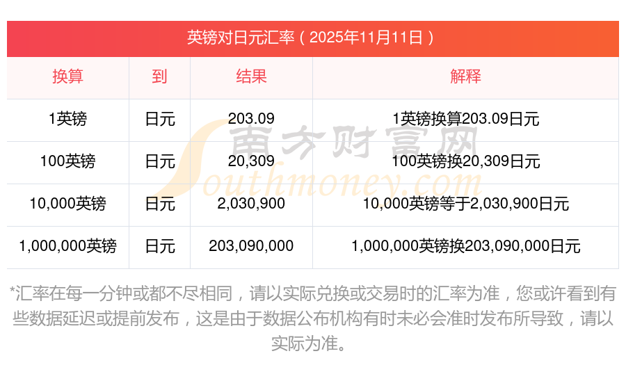 英鎊匯率:今日英鎊對日元匯率是多少?11-11