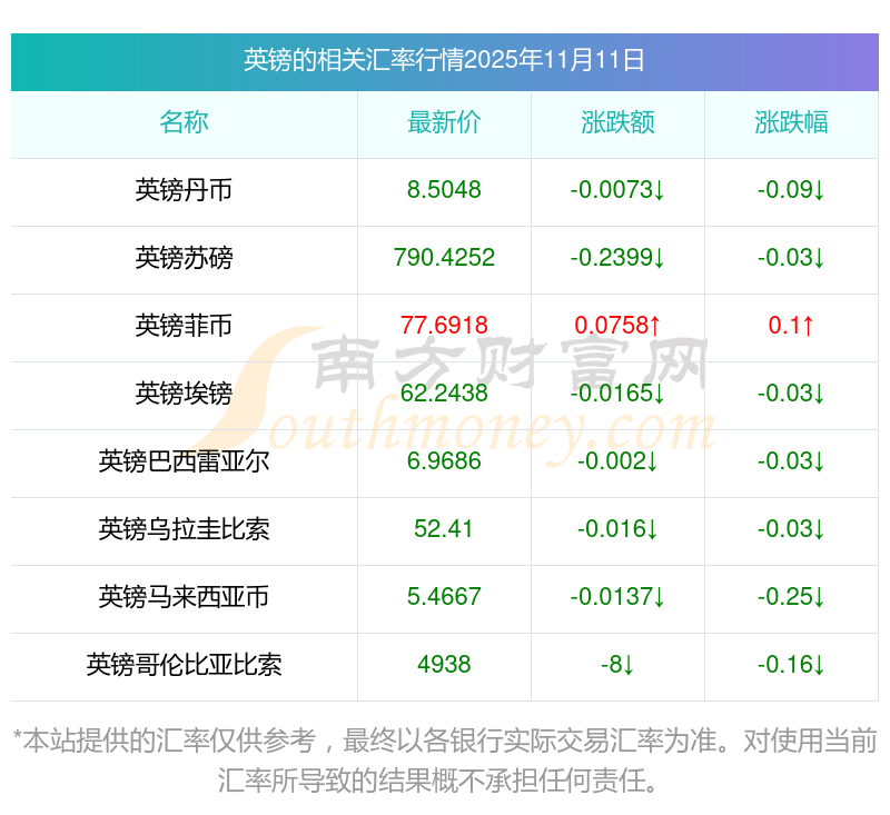 2025年11月11日英鎊相關(guān)匯率查詢