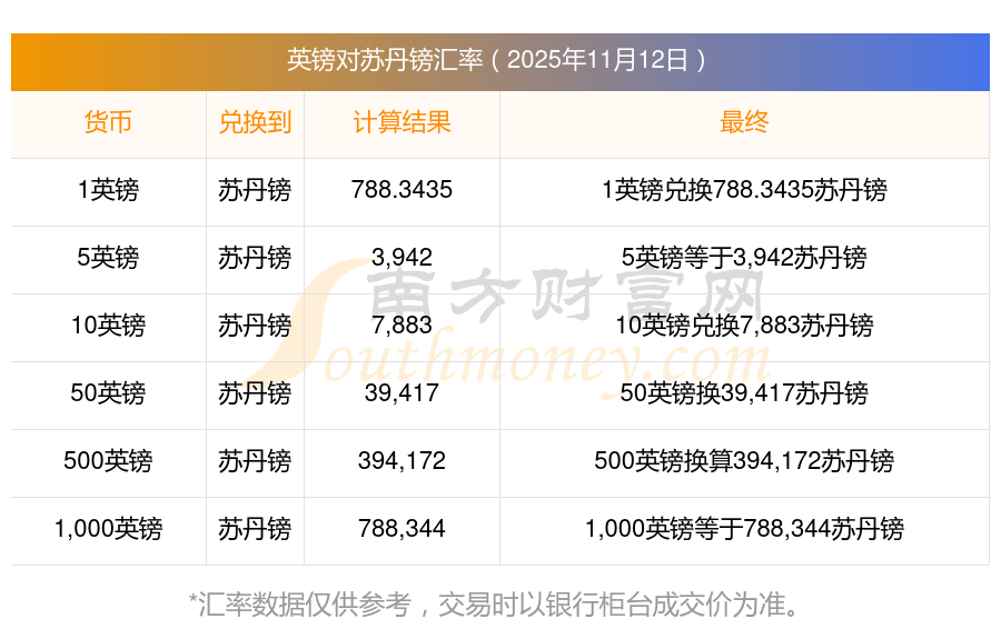 英鎊17折算成蘇丹鎊匯率今天一覽11-12
