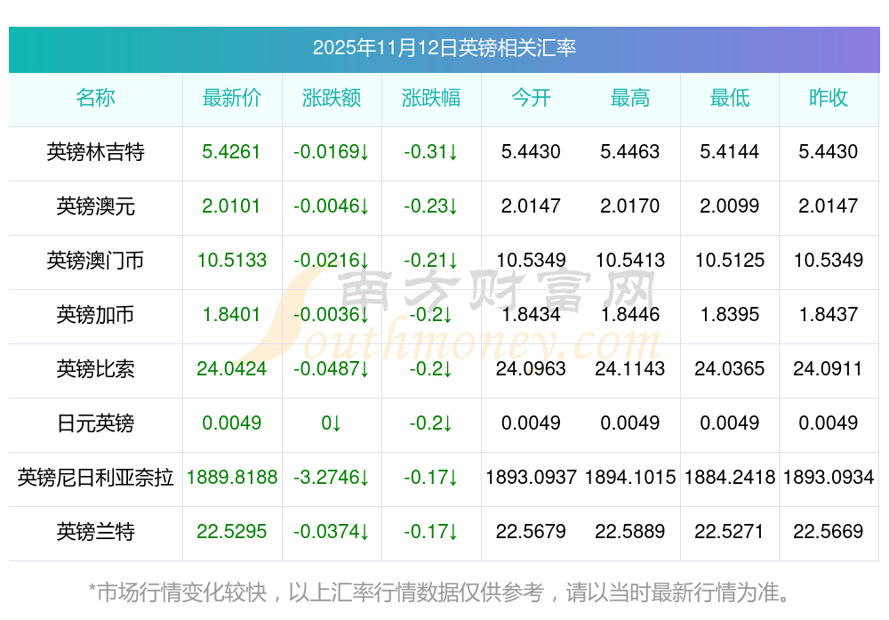 根據(jù)2025年11月12日匯率,英鎊兌換丹幣匯率最新價8.473900,今開價8.4781,昨收價8.4784,最高價8.4824,最低價8.4693。