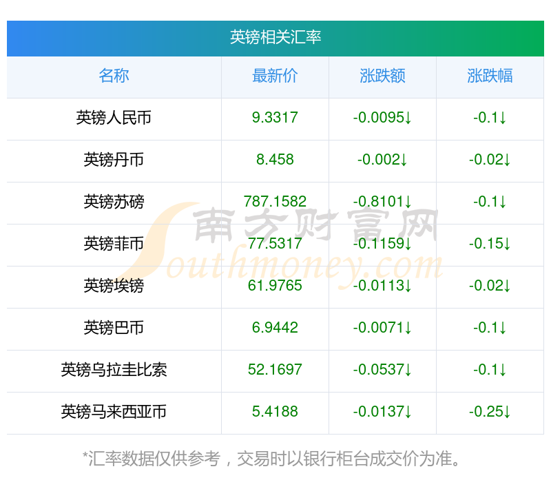 南方財(cái)富網(wǎng)為您提供英鎊對(duì)摩洛哥迪拉姆匯率最新價(jià)格詳情。
