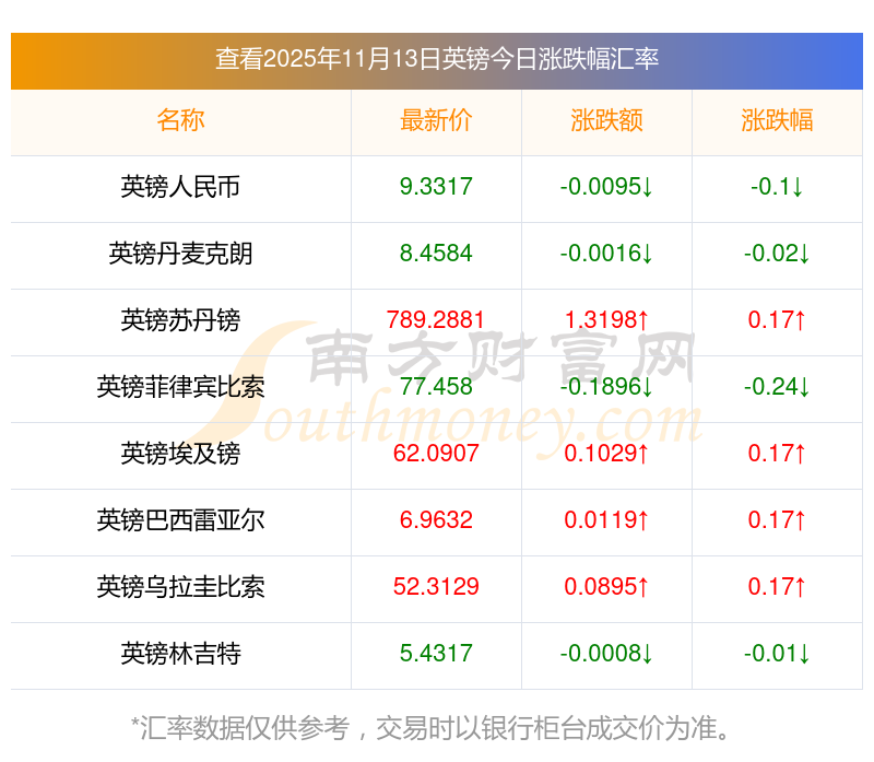 2025年11月13日英鎊相關(guān)匯率查詢(xún)