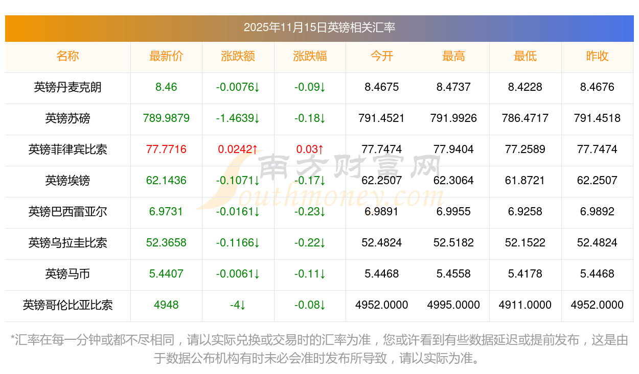 根據(jù)2025年11月15日匯率計(jì)算,GBP兌換CUP匯率最新價(jià)31.614000:今日開(kāi)價(jià)31.6596,昨日收價(jià)31.6140,最高價(jià)31.6812,最低價(jià)31.4604。
