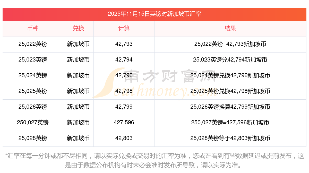 南方財富網(wǎng)為您提供英鎊對新加坡幣匯率最新價格詳情。